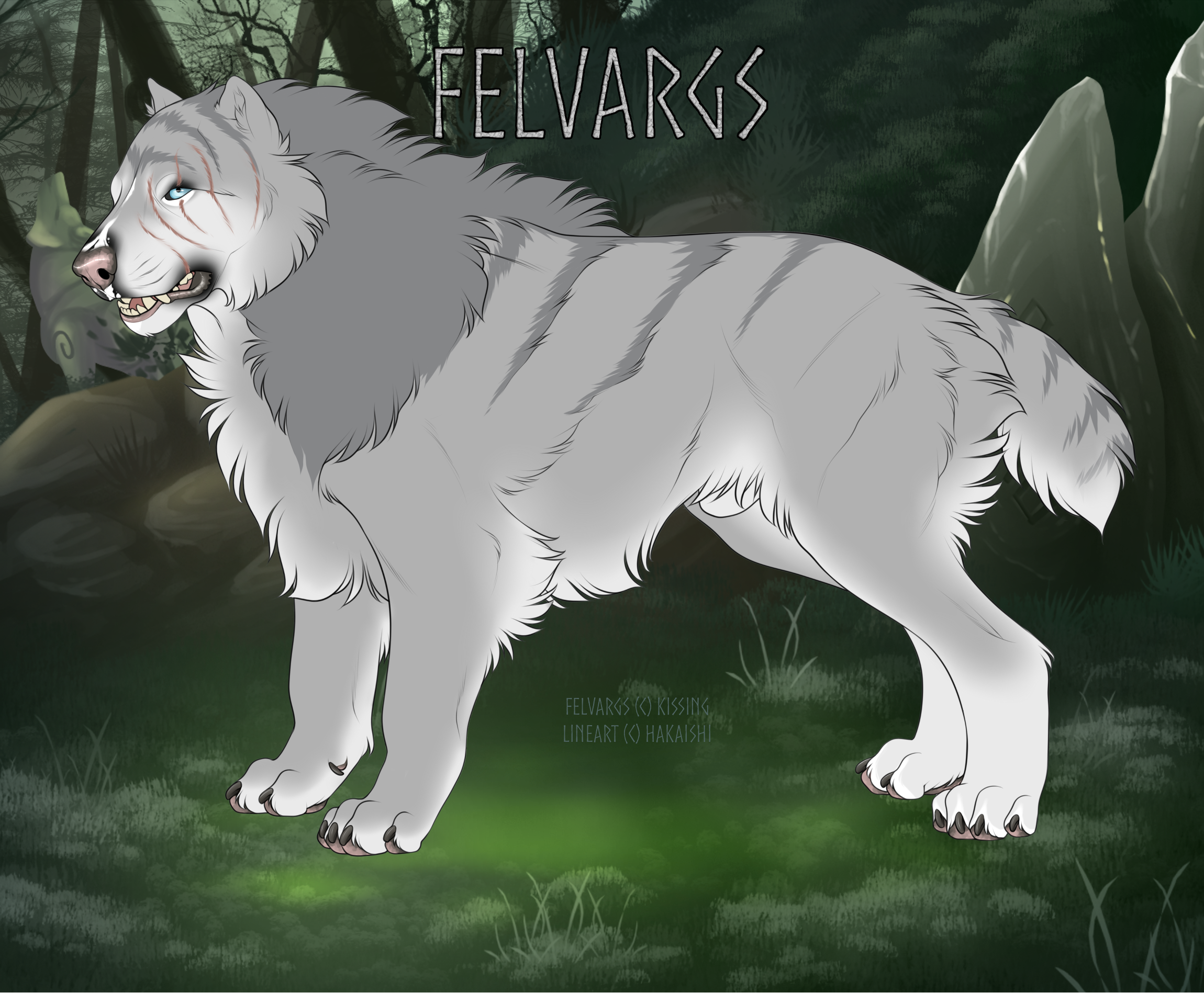 A bit of a unknown/mysterious Felvarg in the sense that not a lot is known about his personality, he tends to keep to himself and not say much. He's quiet and strong, and has been in battles but the circumstances around his scar is a mystery. He does not appear to be a ruthless person so may have gotten the scar from self-defence or a heroic battle.